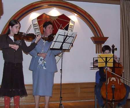 Gyermeklant az énekkari munkát segítik. Ének- és zenepártoló