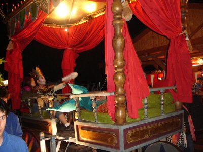 Az 1982-ben alapított francia Transe Express produkcióját készülünk megnézni este kilenckor. Útban a kulturális helynek számító Domb felé egy díszes menetbe botlunk – egy hintóban utazó királyi párt kísérnek zenészek, csörgősök, és egyre több szigetelő csatlakozik a parádéhoz. Hatalmas csontvázak parádéznak, az egyikükkel kezet fogok. Egyszer csak megáll mellettünk egy udvari ember, és rámutatva a CyberPress fotósára megszólal: "A király elrendelte, hogy kísérjelek a hintójához, és csatlakozz a társaságához." A király egy exkluzív interjú keretében – miközben szőlőszemmel eteti fotósunkat és azt kéri, hogy gitározzon vele - elárulja, hogy ez a saját temetési menete, nemsokára meghal és felmegy a magasba találkozni az apjával. Mert bizony ez a parádé, amellyel vagy fél órát haladtunk a Sziget különböző helyszínen, nem más, mint a francia társulat darabjának ráhangolódása, és haladnak a "csodaszerkezet" felé, amely segítségével 30-40 méter magasságban mutatnak majd be akrobatikus jeleneteket. A darab címe Les Rois Faignants (Rest királyok), a cím a francia Meroving-ház utolsó királyaira utal, akik szinte gyermekek lévén az uralkodást inkább a majordomusukra hagyták. Az előadásban Mortibus király – látván, hogy a halottakért mennyi könnyet hullatnak – megrendezi saját temetését. A gyászmenet egy hatalmas fa tövébe érkezik, amely ágain csodálatos mesebeli lények élnek.