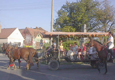 Feldíszített porták, fúvószene, vidám maskarák, lovas és traktoros felvonulás,