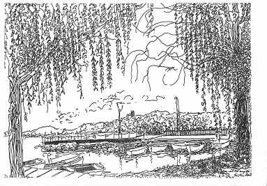 rajz, mely tónusokat is a vonalak sűrűségéből teremtve ábrázolja