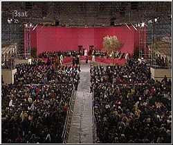 A technika jóvoltából pedig sokan részesei lehettünk szellemi jelenlétünkön túl a vizuális élmény megragadó jellegénél fogva az ünnepnek, mely rövid és frappáns volt: olyan, mint amikor valakik olyan dolog érdekében gyűlnek össze, melynek "belső jóváhagyása" már megtörtént: nem kell rajta vitázni, marad a puszta lényeg.