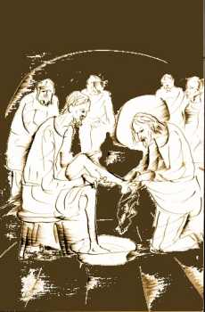 Húsvét ünnepe előtt történt: Jézus tudta, hogy elérkezett az óra, amikor a világból vissza kell térnie az Atyához, mivel szerette övéit, akik a világban maradtak, mindvégig szerette. Vacsora közben történt, amikor a sátán már fölébresztette az áruló Júdásnak, Simon fiának szívében a gondolatot, hogy árulja el. Jézus tudta, hogy az Atya mindent a kezébe adott, s hogy Istentől jött és Istenhez tér vissza. Mégis fölkelt a vacsora mellől, levetette felsőruháját, fogott egy vászonkendőt, és maga elé kötötte. Aztán vizet öntött egy mosdótálba, majd hozzáfogott, hogy sorra megmossa, s a derekára kötött kendővel megtörölje tanítványainak a lábát. Amikor Simon Péterhez ért, az tiltakozott: „Uram, te akarod megmosni az én lábamat?!” Jézus így válaszolt: „Most még nem érted, amit teszek, de később majd megérted.” Péter tovább tiltakozott: „Az én lábamat ugyan meg nem mosod soha!” „Ha nem moslak meg - felelte Jézus -, nem lehetsz közösségben velem.” Akkor, Uram, ne csak a lábamat, hanem a fejemet és a kezemet is!” - mondta Simon Péter. De Jézus ezt felelte: „Aki megfürdött, annak csak a lábát kell megmosni, s akkor egészen tiszta lesz. Ti tiszták vagytok, de nem mindnyájan.” Tudta, hogy ki árulja el, azért mondta: „Nem vagytok mindnyájan tiszták.” Amikor megmosta lábukat, fölvette felsőruháját, újra asztalhoz ült és így szólt hozzájuk: „Tudjátok, mit tettem veletek? Ti Mesternek és Úrnak hívtok, s jól teszitek, mert az vagyok. Ha tehát én, az Úr és Mester megmostam lábatokat, nektek is meg kell mosnotok egymás lábát. Példát adtam, hogy amit én tettem, ti is tegyétek meg.