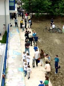 tudásukat, kreativitásukat, körülbelül 380 m útszakaszt telerajzolva, megszínesítve