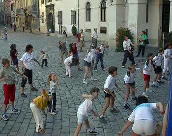 – 30 perces utcai aerobic, a torna ideje alatt a várakozó kisgyermekek