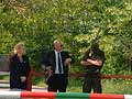 Konrad Hermannt a sopronpusztai áttörés helyszínén az újra felépített kapunál