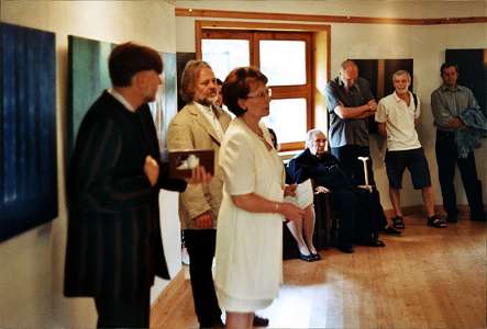 Egy profán világban vállalt különös, vagy különleges utat egy festő, aki szakrális képeket fest a harmadik évezred küszöbén. Többek között erről is beszélt a kolléga, a barát, Szála Erzsébet. Arról, hogy a képek mind egyet szólnak, mindegyik a különös, a távoli fény keresését mondja el más és más módon. Vagy színeikben, a türkiz letisztultságában és a barna melegségével, vagy egyértelmű formáival, ami szintén a szakralitást, a kereszt vonalait idézi.
