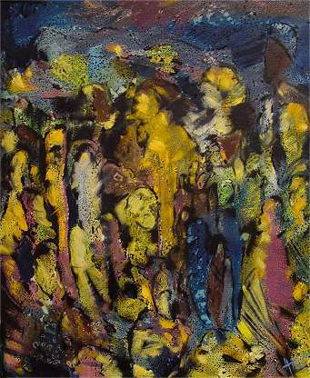 A Körmendi Galéria Soproni, Templom utcai házának utcai frontját foglalja el a november 13-án megnyílt, a Prágában élő Michael Hajnal kiállítása. Sajnos - bár ennek is örülni kell - a galéria 2005. március 1-ig csak szombat-vasárnap 10-17 óráig látogatható.(Más időpontokban előzetes megbeszélés szükséges.) ![]() A kiállítás látogatóját kétségkívül egy nagyon sajátos világ hangulata fogja meg a belépés pillanatától. A két kiállítóterem levegőjét valamilyen nem nyomasztó, de jól érzékelhető visszafogottság, szomorú mosoly lengi át, mely végig követhető a kiállított művek nagyon tág körű tematikájának egész vertikumán. A hangulat nincs összefüggésben az alkalmazott egyéni technikával, mely a különböző fázisú oldatok határán képződő sajátos formavilágot használja ki, amely látszólagos ellentétben áll anyagi megjelenésében a képek hangsúlyozott tükörszerű, lakkos felszínével. ![]() Nincs összefüggésben a keltett rezgés a képek jól szétválaszható dualista színvilágával, melyet tematika szerint is alkalmaz a művész. Megjelenik minden kép előtt, de tapinthatóvá, megfogalmazhatóvá igazán azon alkotások szemlélése közben válik, mint az elmúlás, a visszatekintő fanyar mosolyát elviselni képes kompozíciók . ![]() A fizika törvényeinek engedelmeskedó folyadékok különböző színű halmazából, mintegy a varázsló pálcájának ütésére, alig követhetően bontakoznak ki a valóságelemek, melyek könnyen érthetővé teszik a modern formavilág és színhasználat ellenére(?) a művész alkotásait. A csoportos szereplők vonulnak, dőlnek, beleolvadnak majd kiválnak a háttérből, a környezet nélkül nem életképesek, jól konkretizálható viszonyban vannak az őket körülvevő elemekkel. Minden tartózkodás és ideiglenesség ellenére egységesek arra a rövid időre is, amíg léteznek. ![]() Néha egy-egy színpompás vihar összekuszálja a jól felépített formákat, az elemi erők szögletesítik, torzítják a jelenlétet, de a vihar elcsitul és újrafogalmazódik - talán más színekben, talán kicsit komorabb hangvételben, színhasználatban - a harmónia. Néha a legmerészebb kitörési kisérletek bonyolítják az egyébként sem egyszerű viszonyokat, hogy aztán visszabillenve, mégsem elszakadva álljon helyre a rendnek mondható egyensúly, mely az a bizonyos nem tagadható bágyadt, a túlélő rálátását hangsúlyozó állapotot hordozza. A kiállítás egyik fő jellemzője, hogy mindezen változásokat Michael Hajnalnak sikerül az időbe belehelyezni, a foltok sajátosságaiban a korok-életszakaszok sajátságait konkretizálni, miközben mégis egyfajta távolságtartással, - mint ahogyan a művész a vásznat figyeli a feltartott kezével - rálátással bír az egészre. A kiállításon portré nem, de ember-, táj- és anyagábrázolás bőven látható, változatosságában és egységében vonzó lehetőségként ajánlom meglátogatását a soproniak hétvégi programjai közé. - DI - |