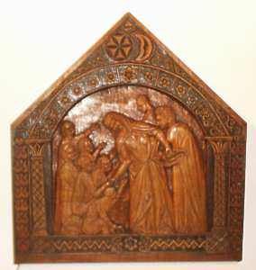 plébániatemplom ajtajának fadomborműve is Badiny Gyula