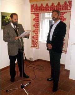 Sz. Nagy Sándor festőművész megnyitó beszédet mond A soproni Erdélyi Házba ezúttal fotóit hozta el a művész.