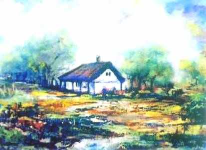 ![]() Kedvenc technikája a légecset. Ezzel gondolati festészetet művel oly módon, hogy az alkotás felületére a levegő viszi át a festéket. Ennek szabadkézi technikáját használva érintés nélkül simogat, realisztikusan ábrázol, úgy hogy közben a szimbólum válik hangsúlyossá. Tanya, pihenőkereszt, gyermekkori emlékek évtizedes távlata és hangulata válik láthatóvá.