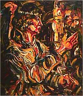 Az eszköztár, különösen a festészet szinte követhetetlen formai-megjelenési, multiplex stílusosztódásai óta, szinte a végtelenbe nyúlik napjainkban. Valljuk be: tulajdonképpen nagyon érdekes, de a végeredmény szempontjából csaknem teljesen mellékes, hogy egy művész milyen eszközökkel éri el a hatást. ![]() A fontos az, hogy átadja a nézőnek a saját bensőjén áteresztett ismeretanyagot, annak egyéni, de a tartalomhoz valamilyen formában ragaszkodó végeredményét. Medgyessy-Kovács Gyulának ez sikerült. Hogy ezt ecset használata nélkül, a tiszta színek közvetlen tubusból felrakásával, majd kézzel vagy bármi más eszközzel való alakításával éri-e el, az lehet érdekesség, de az is nyilvánvaló, hogy a leghagyományosabb ecsettel is számos újat produkálnak a művészek még napjainkban is. ![]() A megszületett mű faktúrája, felszíne a felvitt festékrétegek vastagsága miatt már-már dombormű benyomását kelti az alkalmazott színárnyalatok hatásával együtt. A megfelelő távolságból szemlélt mű alakjainak anatómiája sem hagy kívánnivalót. ![]() Érdekes, ahogyan az új technika az itt kiállított képek leghagyományosabb vallási tartalmát közvetíti a látogató felé. A rendkívül eleven színhatás, a nagyon kontrasztos színhasználat, a paletta kiabáló koloritja szinte a műanyag alapú festékek (pl. akril) és képek jellegét eredményezi. ![]() Az alapvető problémát az életnagyságot meghaladó méretű ábrázolásban sejtem, mely kissé idegenné, kicsit talán a germanisztikusság hatását keltővé teszi a műveket. Tudjuk, hogy a barokk nagy mestereinek túldimenzionált alakjai hasonló érzést keltenek, és hasonló, megoldottnak nem mindig nevezhető nehézségeket hordoznak. ![]() Az erősen expresszív, a megfelelően gigantikus térben talán másképpen hatást gyakorló képeket a téma-megoldás jelenében szívesen szemlélheti mindenki, aki a kiállítást némi összehasonlítási alappal járja végig, és úgy szűri le a kontrasztos hatást, melyet a képek benne keltettek. - DI - |