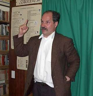 ...emberi élet így már fennmaradhat. Hogy milyen arányban kell igazságot gyakorolnunk, és milyenben irgalmat, nagyon nehéz megmondani, mert irgalomért leghangosabban a bűnös szokott kiabálni. De mégis mind a kettőt meg kell fontolnunk. Én úgy érzem, erről a két legfontosabb közösségrendező elemről a mese nagyon szépen tud szólni. Ezeket tettem bele. Persze dalokkal szorítottam abroncsba. Mire ebből angol fordítás lett, a postát meggazdagítottuk: jó barátom, Sue Foy folyton hívott telefonon, ezen mit értek, azon mit értek. A szöveget sok oldalról meg kellett forgatni, nem volt könnyű feladat. - Fotók is vannak hozzá, saját termésem. Igyekeztem egymásba csukódó képeket mint képpárokat egymás mellé helyezni, amik együtt továbbgondolhatók. Egyik Árpád-kori templom összecsukódik Pál Pista bácsi türelemüvegével. Amikor kifogy az üvegből a gyógyszer, akkor hajnaltól estig csipesszel összerakja a korpuszt: Krisztus a kereszten. Tíz falu nagy templomot épített, egy ember pedig egy kicsi belső templomot. A kettő együtt ér valamit: tíz falu hiába épített egyet, semmit nem ér, ha ezt a belső templomot nem építi meg magában az ember. Más helyütt gyógyító dobbal csángó asszony van lefényképezve. Ezt a dobot újesztendőben használták, hogy a betegség elfusson a falu határáról. Ez összecsukódik azzal a fényképpel, amelyen egy kizöldült kútágas látható. A dolgok ott folytatódnak tovább, ahol az ember nem számít rá. ![]() Az Ünnepi Könyvhétre való tekintettel új oldaláról is bemutatkozott az előadóművész: “Rokonok söre” című kötete műfordításait ő készítette, válogatta és szerkesztette, az előszót, a bevezetőt, valamint a jegyzeteket is ő írta. Legkedvesebb csuvas népdalai elhangzása után így vallott szemet-szívet gyönyörködtetető könyvéről. - Elsősorban népdalénekes és mesemondó vagyok. Így alakult az életem. Hogy valaha is műfordítással is foglalkozni fogok, éppúgy nem hittem volna el - akár tenyeremből, akár talpamból jósolják meg -, mint ahogy azt sem, hogy a mesterségem mesemondás lesz, ebből valaha kenyérkereset lesz. A jövőre sohasem tekintek úgy, mint aki kiszámítani igyekszik azt, hanem mivel szabad életet élek - a szónak abban az értelmében, hogy feladatot csak magamnak szabok -, nem lepődök meg semmin. A műfordítás is úgy jött, hogy telefonon kérték Pécsről, hogy sördalt énekeljek. És mivel magyar sördal nem nagyon van - tudható, hogy miért, a sörivására nem büszke a magyarság, még a rege azt is tartja, hogy Aradnál az osztrákok sörrel koccintottak -, egy ilyen furcsa kérés terelt engem ebbe az irányba. Megtudtam, hogy a csuvasoknál a sörivás nem tréfadolog. Sördalokat énekelnek mellé, ami tulajdonképpen rokondicsérő költészet. A világirodalom igazi gyöngyszemei ezek, amely a kis népek költészetét is számontartja. ![]() Gennadij Ajgi csuvas költő mondta, hogy a létüket köszönhetik ezeknek a daloknak. Ezen a ponton érdekes nekem a sörköltészet. Ez az, amivel igyekszem a sörös haknivilágba ártatlan arccal behatolni. Itt igazi költészetet kapnak olyan emberek, akik ha azt a szót hallanák, népművelő, hanyatt-homlok elfutnának. Pedig a jó szóra is szomjasak! Ott ülnek a sörsátrakban, és jobbik esetben kedélyes bécsi muzsikát, viccet prágait vagy gólszámolgató münchenit kapnak, de olyat, amihez nekünk közünk van, olyant nem. Márpedig ezeknek a sördaloknak egy része magyar szerkezetű dallam. Ezek olyan dallamok, hogy ahogy egymás után elénekelem őket, és azt kérdezik: hogy lehet ennyi népdal egymás mellett, amit nem ismernek. Ha Kodály a csuvas dallamokat gyermekeknek tette le egy 140 dalból álló kottafüzetbe, hát akkor már 50 éves örökségünk, hogy ezzel foglalkoznunk kell. Azért adta gyermekeknek, hogy a magyar embernek az idegrendszerébe menjen be, és ne csak mint műélvező hallgassa, azt mondta, hogy a magunk megismerését mélyítjük a csuvas népköltészettel. Sőt, azt mondta, a világzene felé előbb vezet csuvas földön át a mi utunk, mintha egyenesen nyugatra mennénk. ![]() - A csuvas költészethez úgy jutottam el, hogy Vikár László és Bereczki Gábor kötetét megvettem nagyon régen, és annak a zenei felvételeit, az eredeti hangzó anyagot a Zenetudományi Intézettől megkaptam. Megtanultam 300-340 csuvas dalt, le van írva kiejtés szerint a szövege, fülembe ment a vers ritmusa, a metrum, és akkor néztem a nyers szöveget, és beleraktam abba a formába. Olyan volt ez, mint egy gipszforma, és beleöntöttem a fölhevített rezet. Van köztük olyan, amiről azt gondolnánk, görög versforma: reszkető levelei szélben zúgnak. Szép rózsám, egyenek csak most, akik esznek, ide gyere, most duruzsoljunk, míg falatoznak. Hát ebbe persze örömöm leltem. Hozzám hajló szép szerelmed rossz vadalma savanyúság. patanyomon út pora elnyugszik, énekem immár elkezdem, dalokon a lelkem megnyugszik. - Egyik tervem a “Bú hozza, kedv hordozza” című könyvem második és harmadik részét is megírni, pedig még a másodikkal se vagyok kész. 220 észt dalom van, ami a dalolásról szól. Náluk ez külön műfaj: dal a dalolásról. Ha már ars poétikus költészetnél tartunk: mesék a meséről. Egyet el is mondtam itt. Voltam Tallinban nemzetközi mesemondó versenyen. Csodálatos élmény volt, írtam is egy mesét ennek hatására. Az a nagy kérdés bennük, hogy érdemes-e ma még beszélni, eljut-e a szó értelme ahhoz, akihez el kellene jusson. ![]() - Sokáig írtam pályázatokat. A tollforgatók azt mondták: ez igen sörös ügy, a sörösöknek meg ez igen irodalmi volt. A soproni sörgyárnak is írtam, másokat is próbáltam meggyőzni: ez költészet, ez néprajztudomány, ez gasztronómia, ez keletkutatás, de nem kellett senkinek. Lemondtam 