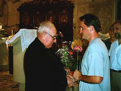 Vasárnap a délután öt órai misére még a szokottnál is jobban megtelt a soproni Szent György-templom. Tamás püspök úr, aki egyébként mindenki által ismerten jó barátságban van a templom plébánosával, Bindes Ferenc kanonokkal, s aki a misét celebrálta, sem véletlenül jött erre a hétvégére Sopronba.