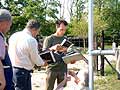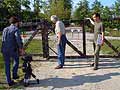 Konrad Hermannt a sopronpusztai áttörés helyszínén az újra felépített kapunál